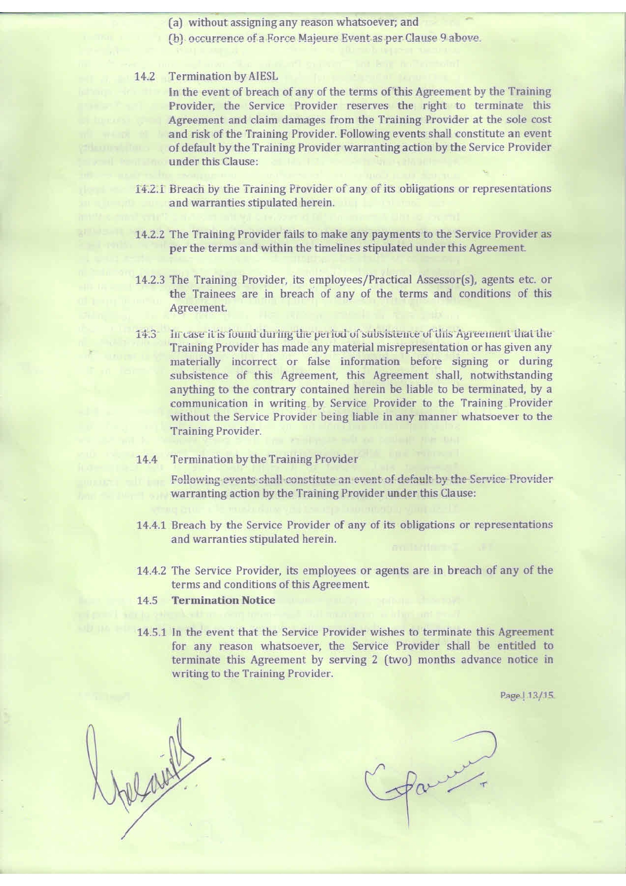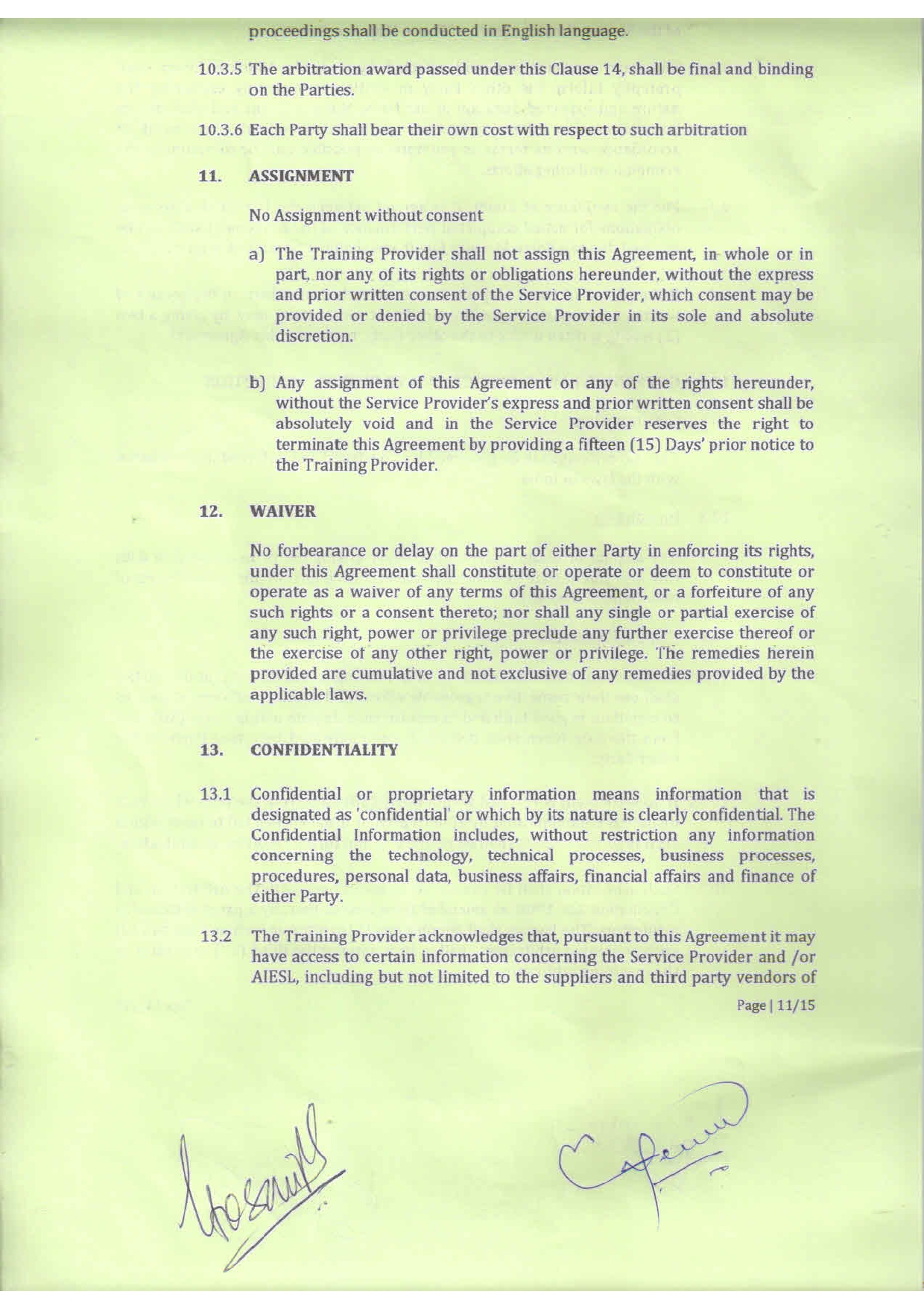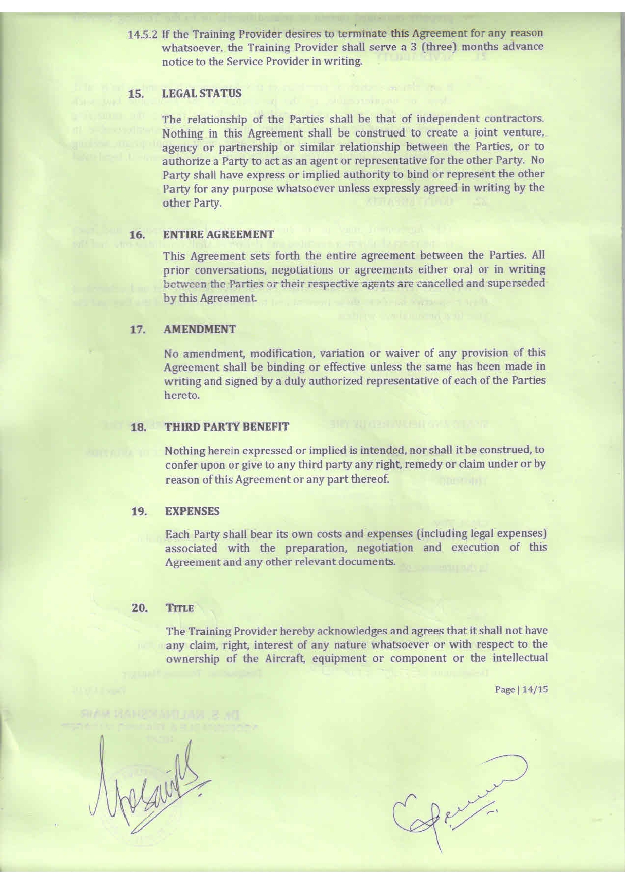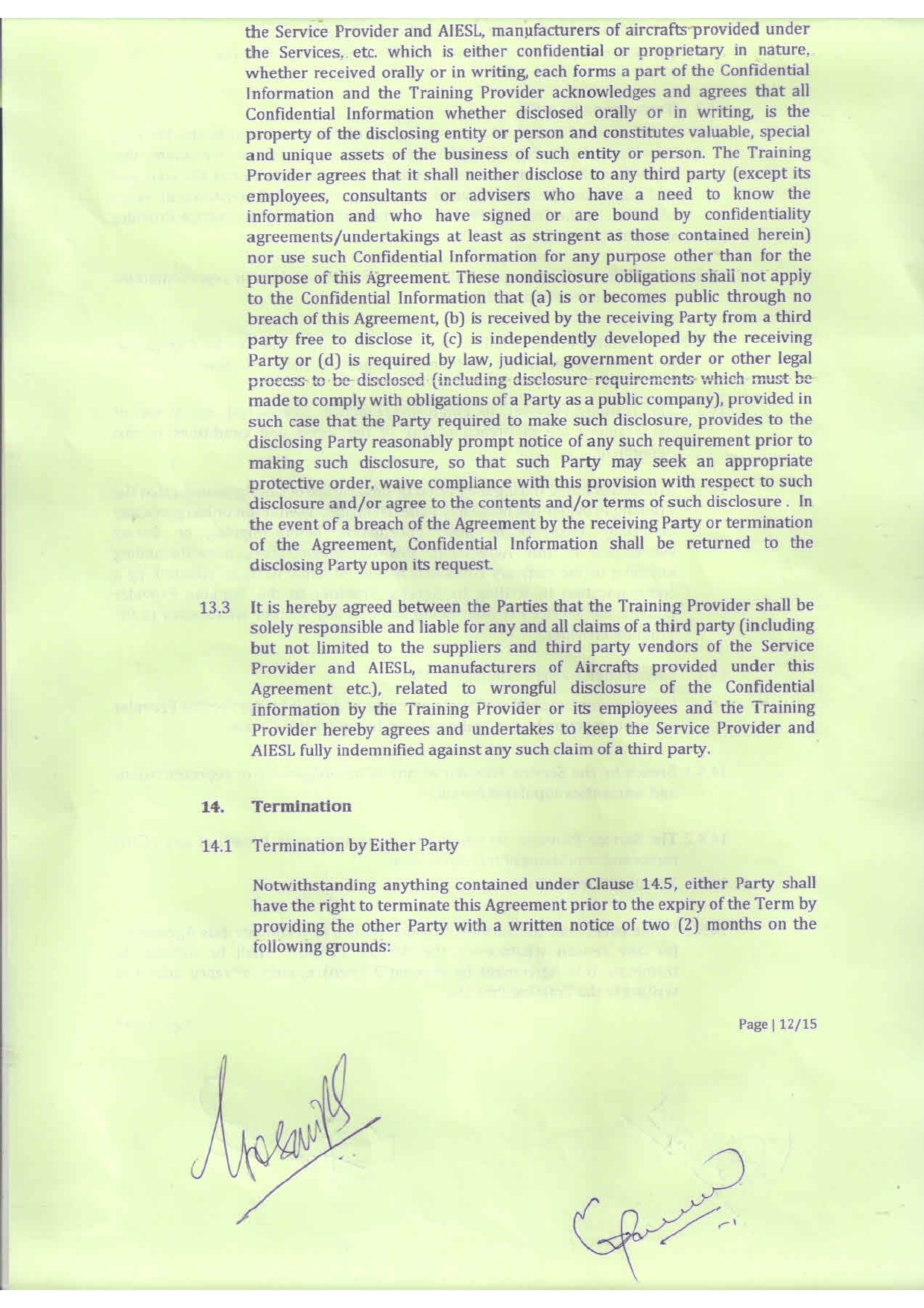 For providing 360 hours training for AME students, HCAT has entered into an agreement with Air India Engineering Services Limited(AIESL), Thiruvananthapuram.
